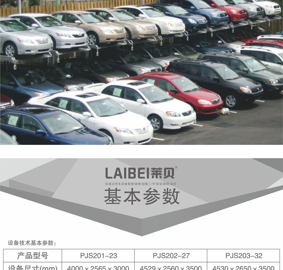 四川莱贝停车设备有限公司致力于立体停车租赁、电动立体车库、停车设备出租、机械停车设备销售、机械式立体车库设备经营租赁、立体停车场投资建设、停车场经营管理、停车场规划设计、停车场施工建设、共享停车、盘活停车场、收购停车场、租赁停车场、收购停车位、出售停车位、停车资产金融管理及互联网停车软件开发车主服务等领域。我们为机场、车站、商场、大学、住宅、酒店、p r停车等各种停车类型,从一个停车场一个区域到一个城市提供停车位投资经营解决方案。公司业务特色鲜明,在市场营销、风险控制、人力资源管理等方面均衡发展,形成覆盖全国的业务网络,建立了科学的管理模式。公司与多家金融机构、设备制造商、服务团队、停车管理等多家企业形成战略合作关系,抓住历史机遇,在尽可能短的时间内,做大做强做出品牌。不断设计并优化停车场方案,为客户提供多元化的立体停车场投资经营以及技术支持服务,致力于成为国内立体停车场投资经营提供商。为了响应快速发展的停车需求和引入社会资源优化停车产业结构的号召,莱贝停车设备配合政策,解决城市停车难题,将未来停车产业推向新的领域。公司利用人才、技术和设备优势,租赁一系列适合国情的产品。主要有:立体停车租赁、电动立体车库、停车设备出租、简易升降式、升降横移升降式等。该产品具有占地面积少、空间利用率高、安装方便、能耗低、噪音小等特点,适用于各种场地和建设要求。公司为客户提供立体车库规划计划、施工设计、安装调试、运营培训、技术支持售后、机械停车设备销售、租赁、回收等多项服务。
