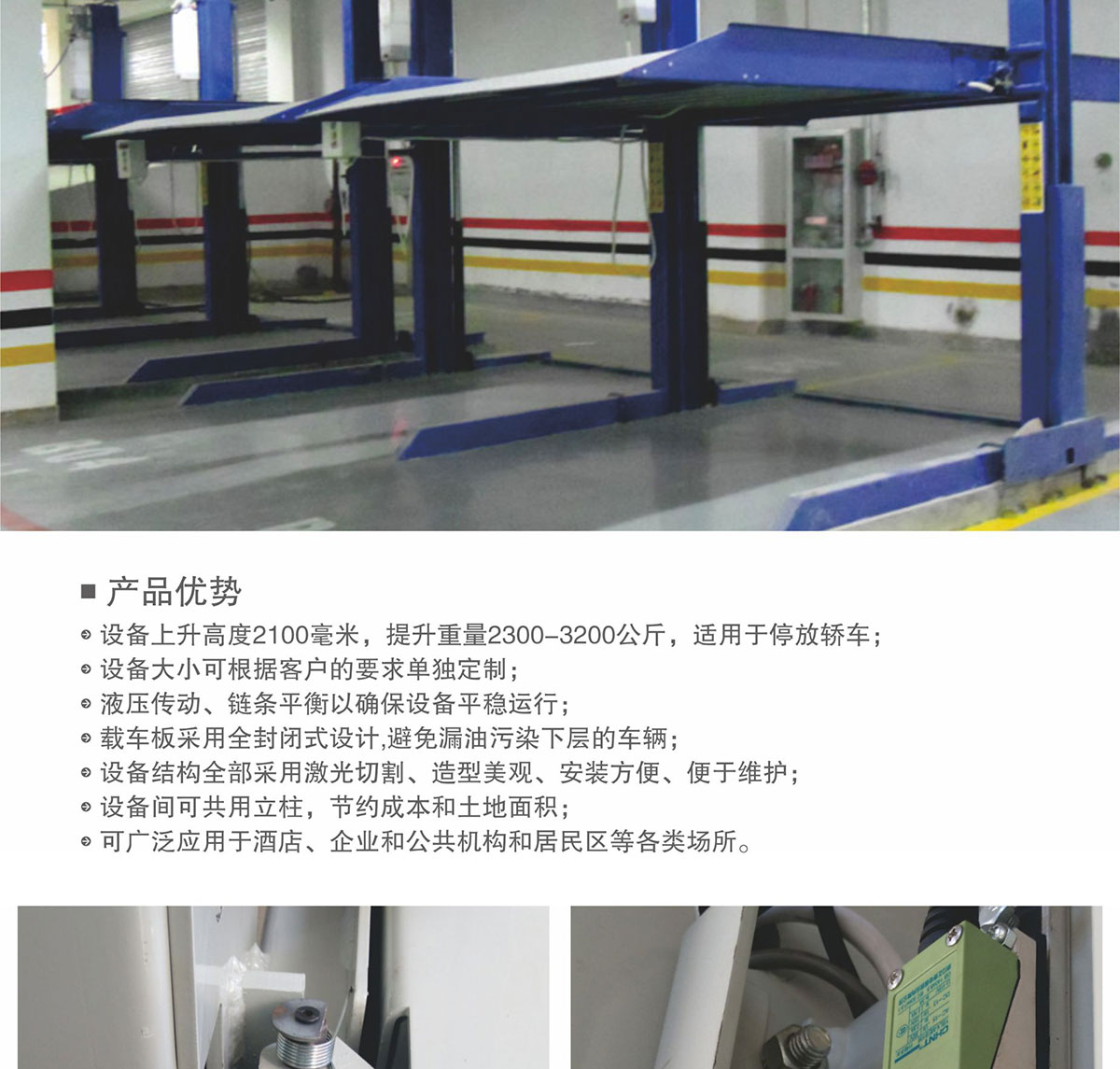 机械式停车起步较晚,直到上世纪80年代中期才有设计院开始进行研发,并于1988年在北京建成了机械式停车库,两层68个车位。当时的汽车保有量还低,1985年保有量79.5万辆,而北京只有5.8万辆,在这种情况下开发机械式立体停车术不能不说有远见。因为15年后当的汽车市场门户洞开、汽车保有量快速增,的停车设备制造产业已经,能够为城市提供各种类型的机械式立体停车设备了。我国机械停车设备发展现状保障安全更近几年,一些由在城市商业中心投资兴建的大型车库也开始采用全自动的机械式停车设备。据前瞻产业研究院发布的《2015-2020年机械停车设备行业调研与投资战略规划分析报告》显示,截至2013年底,机械式停车库的城市有403个,机械式停车库项目总数10397个,泊位总量2,156,407个。泊位总量目前仅次于日本,日本现在大概有286万余个机械式停车位,也许再过两年,我们的总量将日本居。目前除外,各省市自治区几乎都有了机械式停车库,普及率比较高。另外,每年的出口量目前也居,2013年出口27个和地区,23600多个泊位,其中主要是美、欧和。日本是目前上采用机械式停车库更多的,自上世纪60年代以来,机械式停车库随着汽车保有量的增加而逐年增加,并逐渐成为日本城市停车的主流形式,占到了路外配套停车位63.5的比重。和日本停车市场的情况相近,但目前机械式停车位占的比例还不到5。经过20来年的发展,主要的骨干企业在术上已经形成了较强的自主开发能力,形成了较为产品及术系列,实现了产品的规模化和批量化生产,并且在市场中形成了自己的和特色。但目前有一个不太好的现象,在机械式停车库正逐步为城市新建住宅小区配库所选用的同时,一些房地产商看重的不是车库的实际使用价值而是利用价值。有不少住宅小区选用机械式停车库很上只是为了满足规划的车位配套需求,以取得规划部门的建设和销售许可,对车库的质量、安全并不关心,一味追求车库的容车数量和,这样一些车库建成后达不到使用要求,给机械式停车库带来比较的。机械式停车库要为民所用、为民,部门应法,对建成机械式停车库的力度,车库的出现。