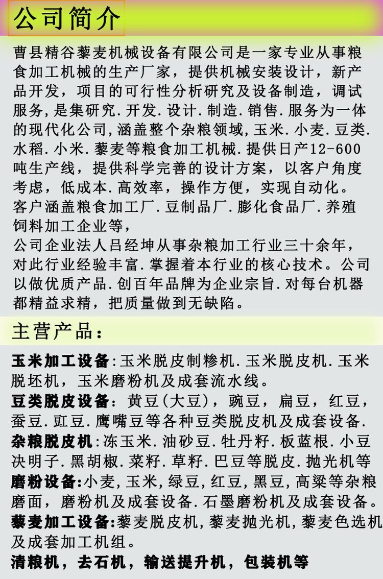 商铺名称:曹县精谷藜麦机械设备有限公司