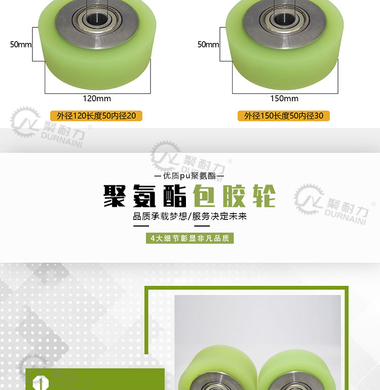 滚筒外径100聚氨酯包胶6205Z轴承6304PU胶轮滚轮导轮防震静音耐磨