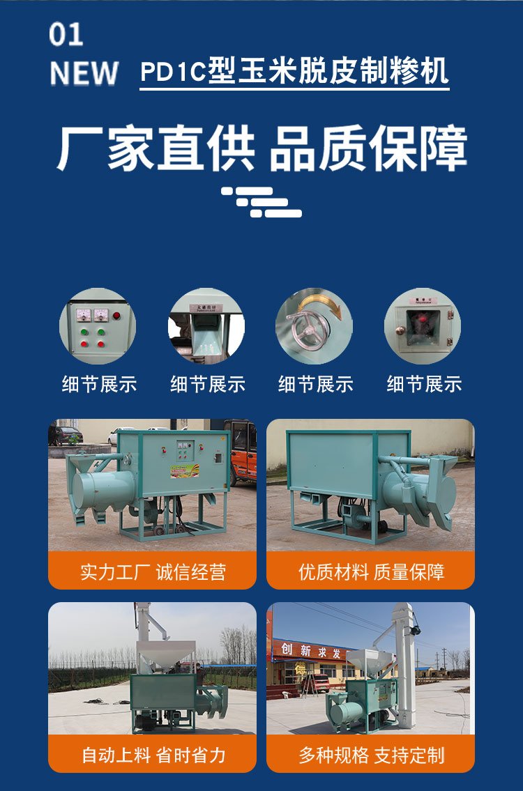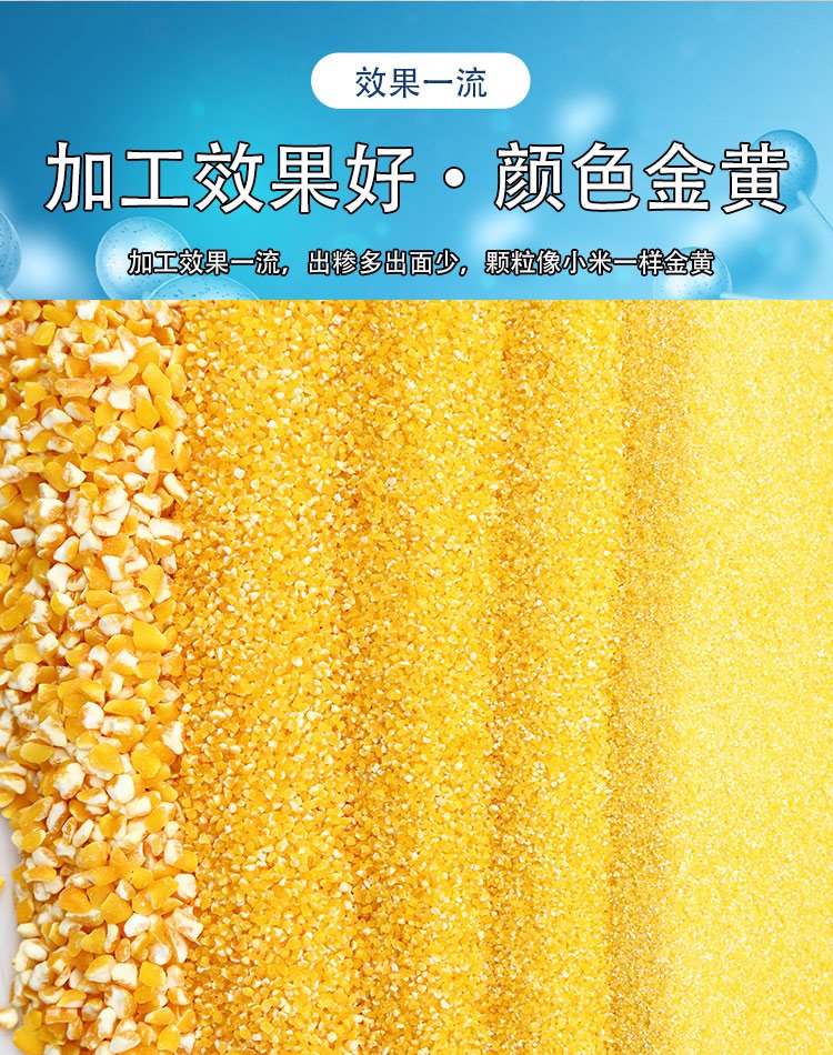 2? 成品率高,脱皮后玉米仁整粒度高,都是整粒或者两半的,麸皮中没有玉米糁和玉米面