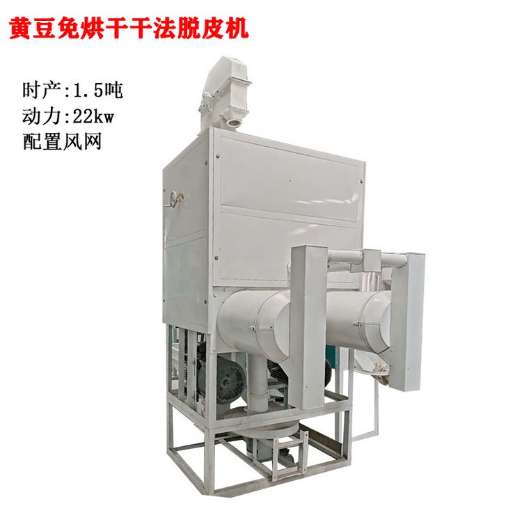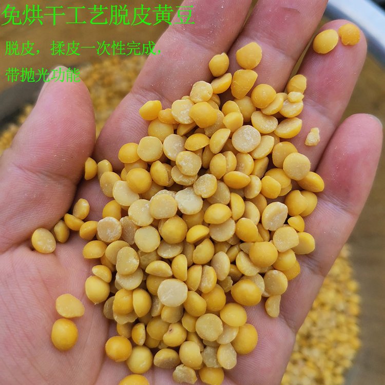 大豆的含水量高低是去皮工艺关键的因素,大豆含水量在9~10左右比较适宜脱皮,但东北大豆一般都高于这个含水量,大部分在12~15,普通的脱皮机,要求先把大豆水分烘干至9~10个点,然后再开始脱皮。干燥是一个很繁琐的过程,1.干燥机容量要大2.干燥过程繁琐,先清洗后的黄豆进行烘干处理,使黄豆中的水分降低到10左右,再在储仓中停留24-72小时,让黄豆冷却到环境温度,再脱皮。而且温度掌握不好,豆子质量发生变化。烘干过程费时费力费人工。我们生产的黄豆脱皮机,针对水分高,难脱的东北黄豆,黑龙江大豆脱皮,无水分要求,采用免烘干全干法脱皮,无需烘干,直接脱皮,一遍成功,省去繁杂的烘干程序,脱净率高达98以上。脱皮后大豆是分半的豆仁。碎粒少,脱皮效果好,产量大小均可定制,适合黄豆加工厂或者食品厂使用。