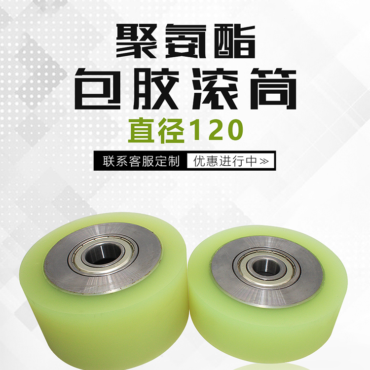 聚氨酯包胶轮外径100120150双轴承PU无动力滚筒流水线输送辊现货