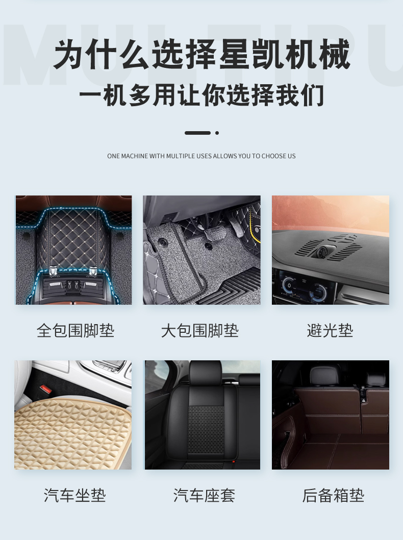 适用材质 | 柔性材料、汽车脚垫材料、皮革、坐垫、座套 | ||