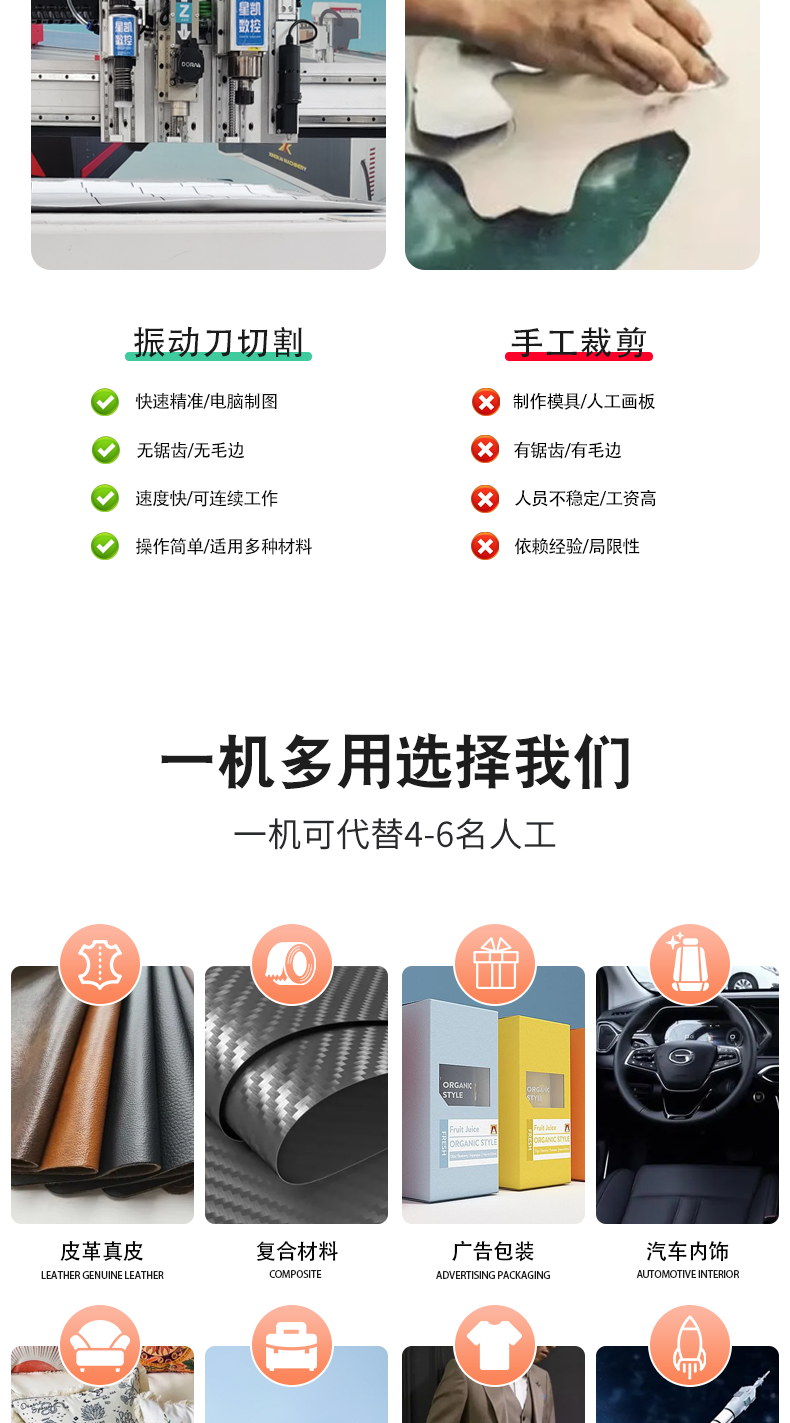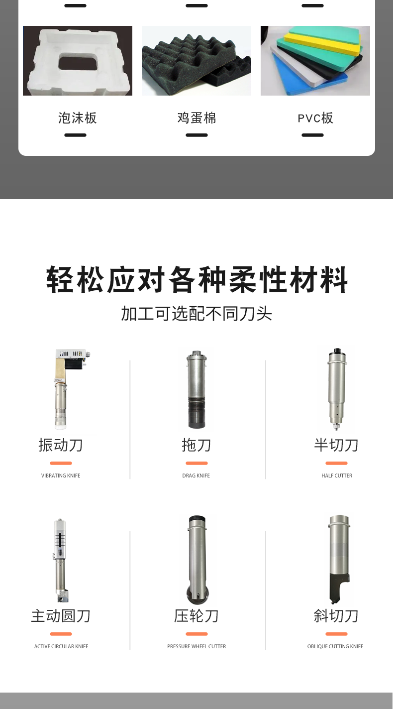作用原理 | 振动刀切割、拖刀切割 | ||