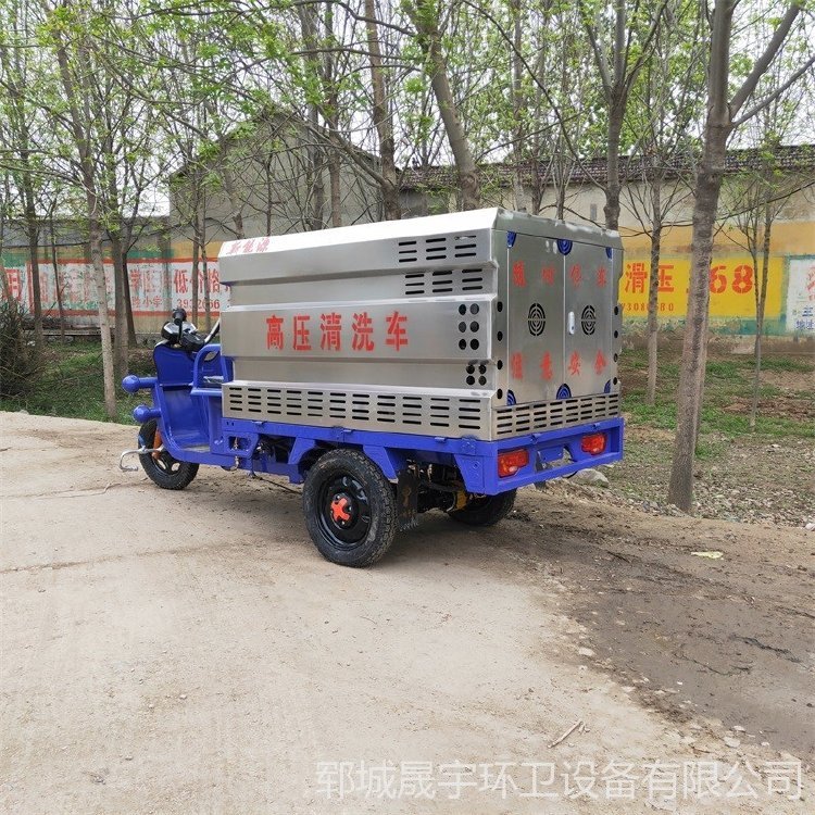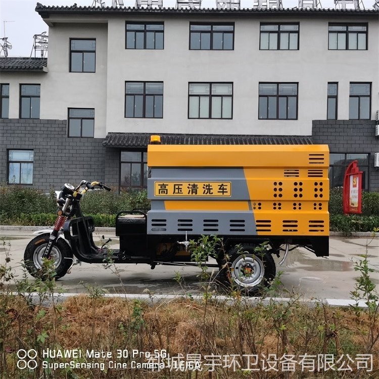 高压冲洗车而且可配合小型扫路机共同作业,对人行道和辅道进行快速保洁,作业效率更高。车辆体积小巧,重量轻,通过性强,且不会对人行道地砖,井盖等其他公共设施造成损坏。车辆配有作业报警装置,以及夜间反光条,适合白天、夜晚作业。独有的“工作速度模式”、“水位报警装置”、“高低速调整”可提高作业安全系数,采用优质电动三轮车底盘操作简单,普通环卫工人即可操作。