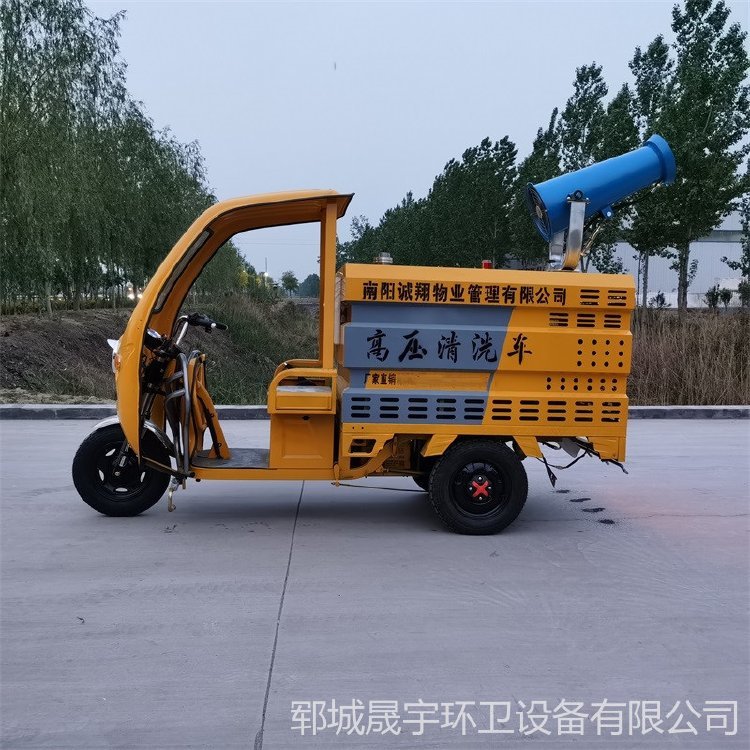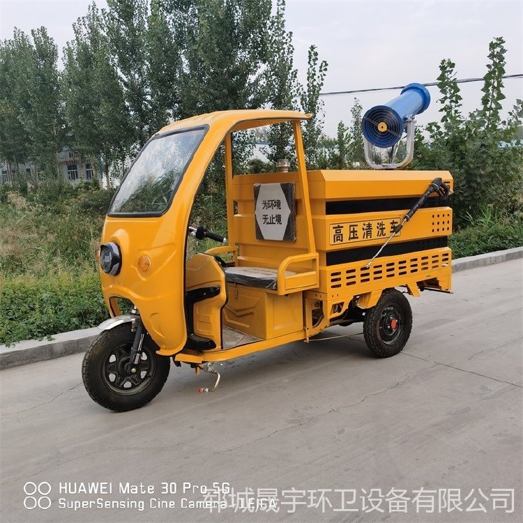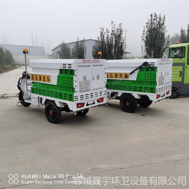 高压冲洗车而且可配合小型扫路机共同作业,对人行道和辅道进行快速保洁,作业效率更高。车辆体积小巧,重量轻,通过性强,且不会对人行道地砖,井盖等其他公共设施造成损坏。车辆配有作业报警装置,以及夜间反光条,适合白天、夜晚作业。独有的“工作速度模式”、“水位报警装置”、“高低速调整”可提高作业安全系数,采用优质电动三轮车底盘操作简单,普通环卫工人即可操作。