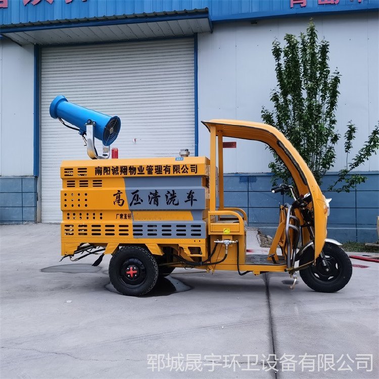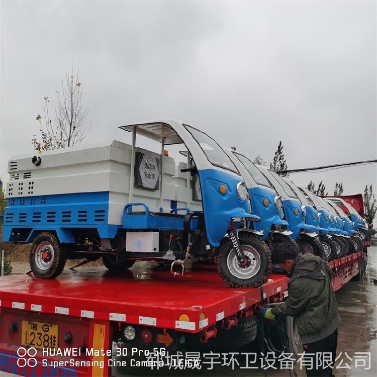 高压冲洗车而且可配合小型扫路机共同作业,对人行道和辅道进行快速保洁,作业效率更高。车辆体积小巧,重量轻,通过性强,且不会对人行道地砖,井盖等其他公共设施造成损坏。车辆配有作业报警装置,以及夜间反光条,适合白天、夜晚作业。独有的“工作速度模式”、“水位报警装置”、“高低速调整”可提高作业安全系数,采用优质电动三轮车底盘操作简单,普通环卫工人即可操作。