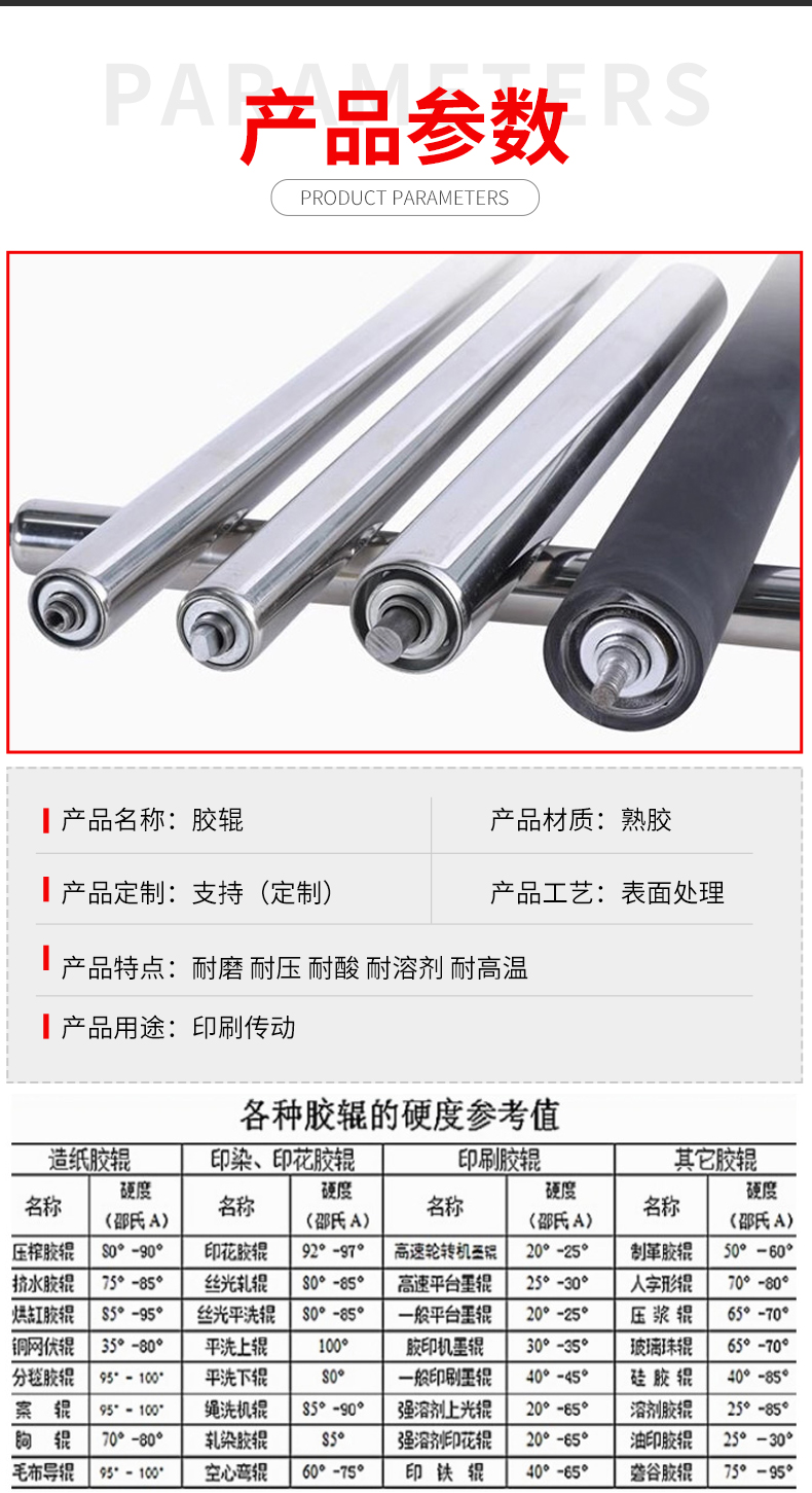 定制耐磨橡胶轮耐高温硅胶件聚氨酯滚轮包胶印刷pu输送辊加工
