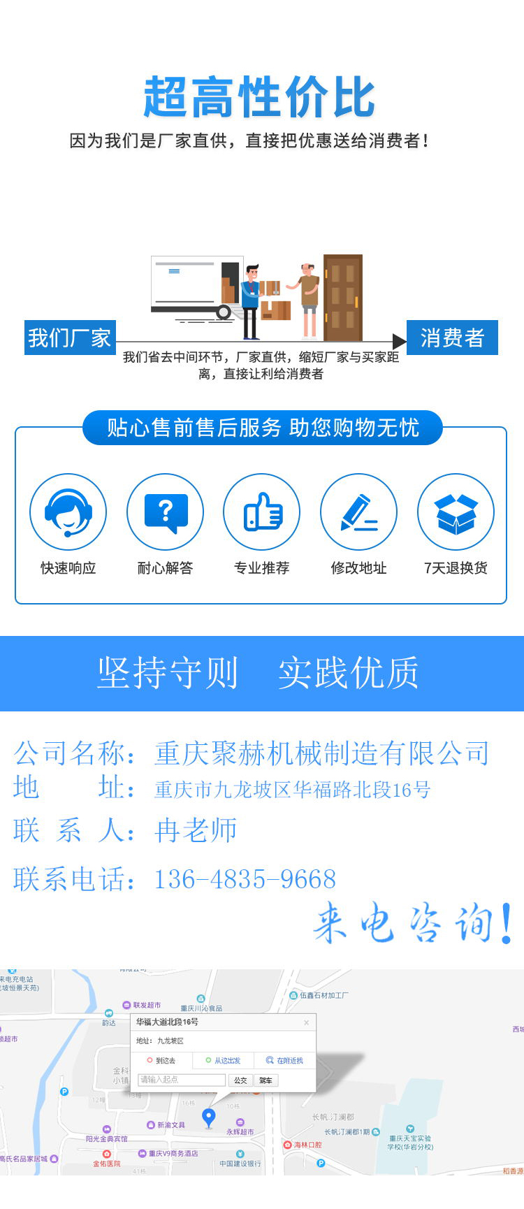 重庆聚赫机械制造有限公司 智能客服智能客服在线解答,若涉及资金打款事宜,务必与厂家进行电话确认。