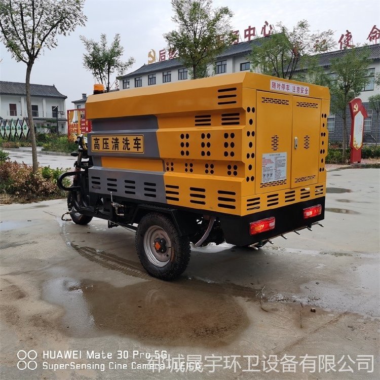 高压冲洗车而且可配合小型扫路机共同作业,对人行道和辅道进行快速保洁,作业效率更高。车辆体积小巧,重量轻,通过性强,且不会对人行道地砖,井盖等其他公共设施造成损坏。车辆配有作业报警装置,以及夜间反光条,适合白天、夜晚作业。独有的“工作速度模式”、“水位报警装置”、“高低速调整”可提高作业安全系数,采用优质电动三轮车底盘操作简单,普通环卫工人即可操作。