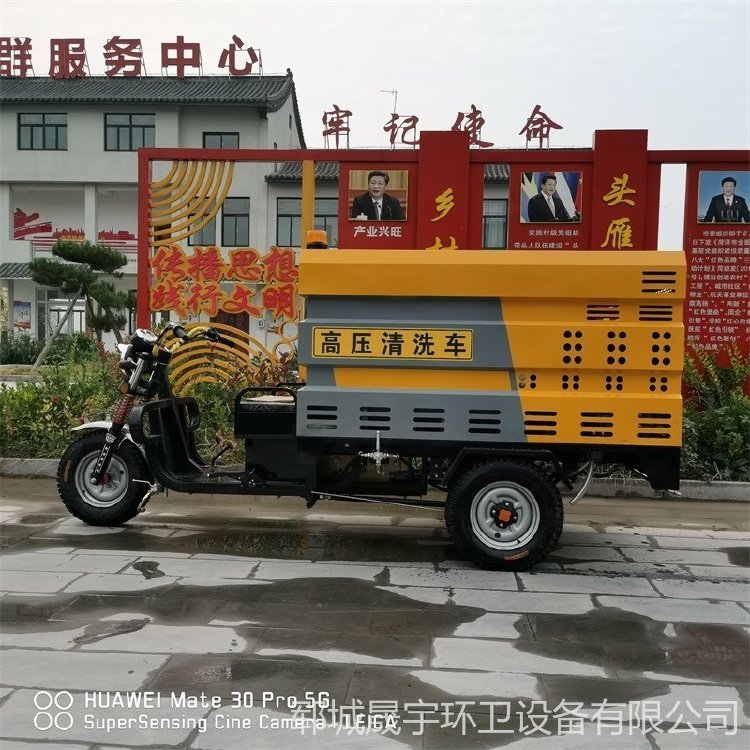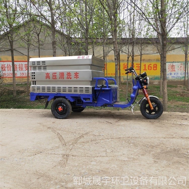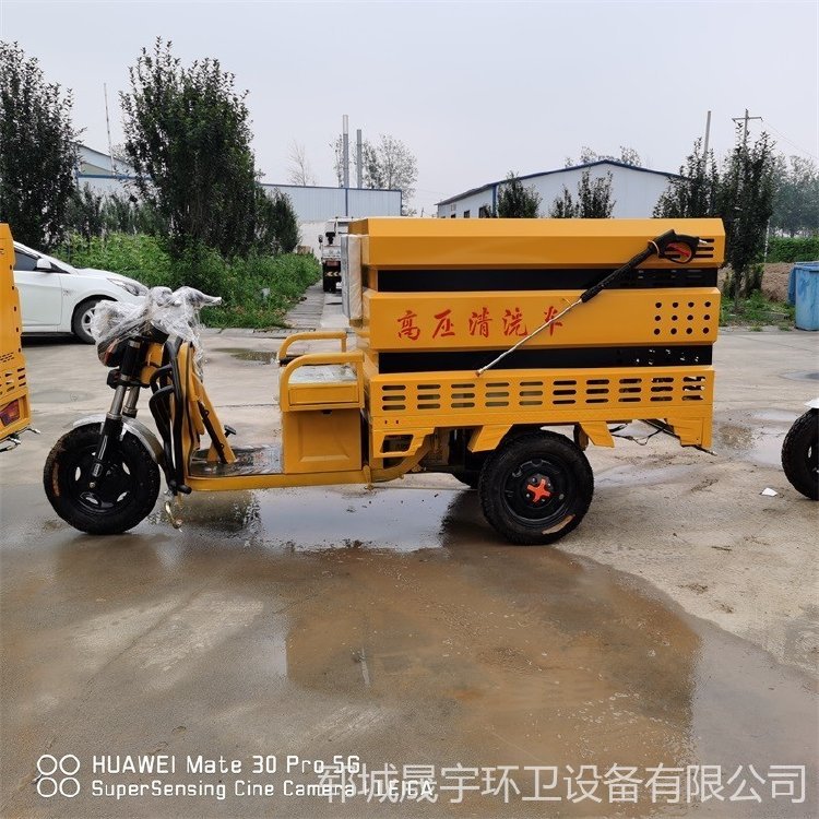 高压冲洗车而且可配合小型扫路机共同作业,对人行道和辅道进行快速保洁,作业效率更高。车辆体积小巧,重量轻,通过性强,且不会对人行道地砖,井盖等其他公共设施造成损坏。车辆配有作业报警装置,以及夜间反光条,适合白天、夜晚作业。独有的“工作速度模式”、“水位报警装置”、“高低速调整”可提高作业安全系数,采用优质电动三轮车底盘操作简单,普通环卫工人即可操作。
