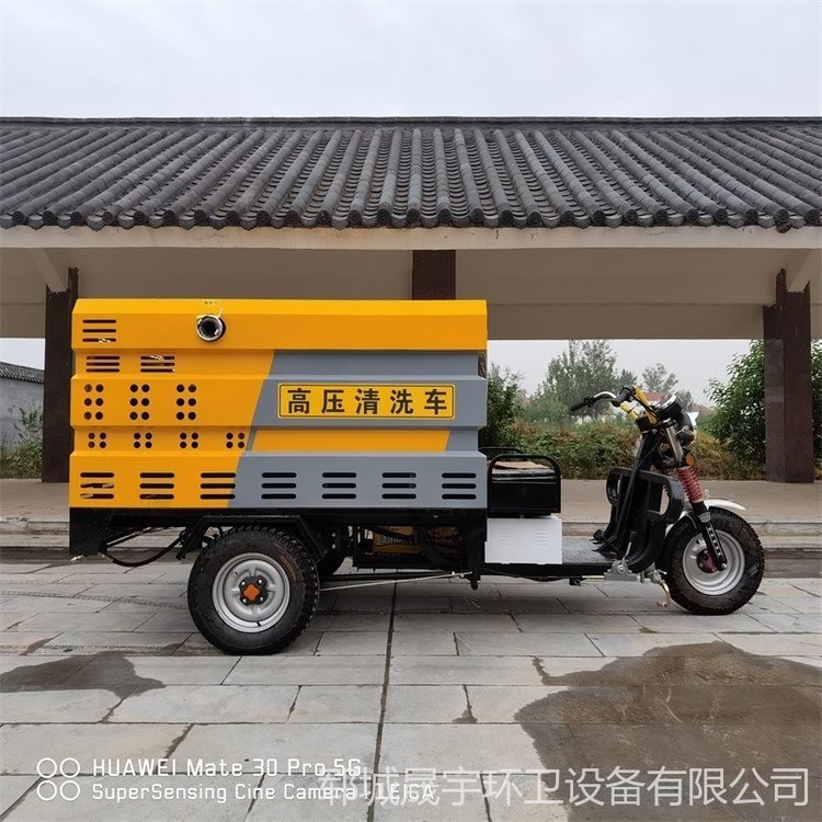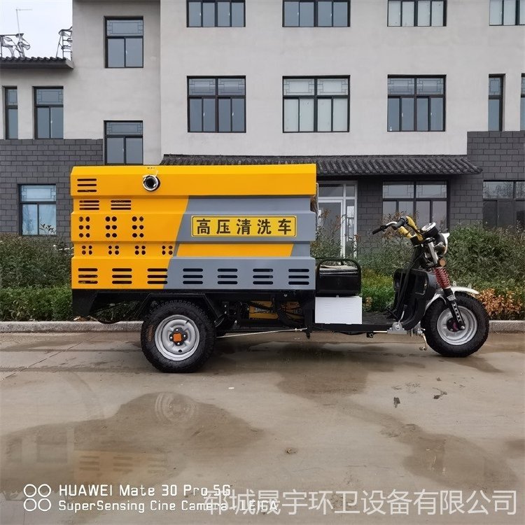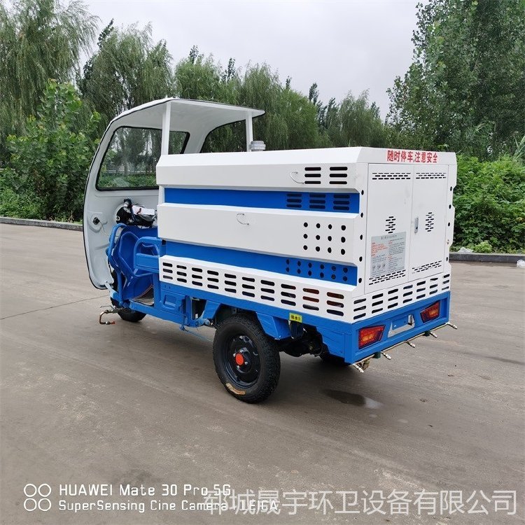 高压冲洗车而且可配合小型扫路机共同作业,对人行道和辅道进行快速保洁,作业效率更高。车辆体积小巧,重量轻,通过性强,且不会对人行道地砖,井盖等其他公共设施造成损坏。车辆配有作业报警装置,以及夜间反光条,适合白天、夜晚作业。独有的“工作速度模式”、“水位报警装置”、“高低速调整”可提高作业安全系数,采用优质电动三轮车底盘操作简单,普通环卫工人即可操作。