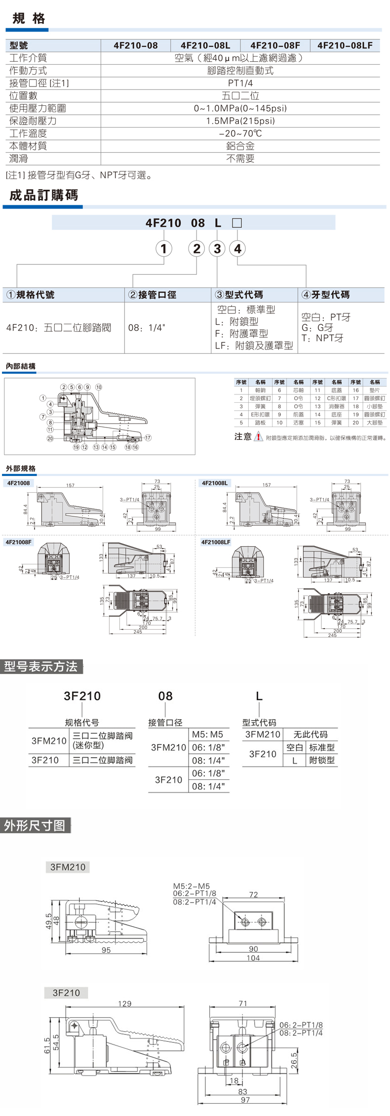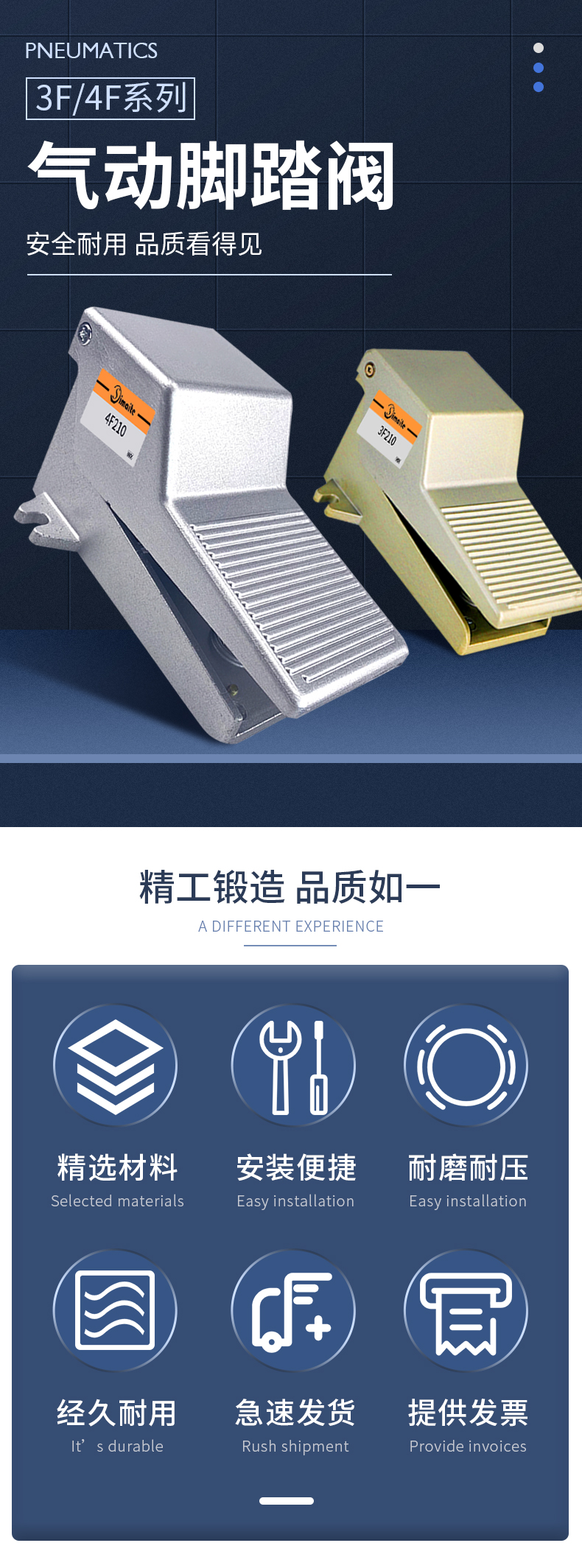 斯麦特气动元件工厂生产销售脚踏阀3F/4F可带锁 位置数 | 二位三通 | ||