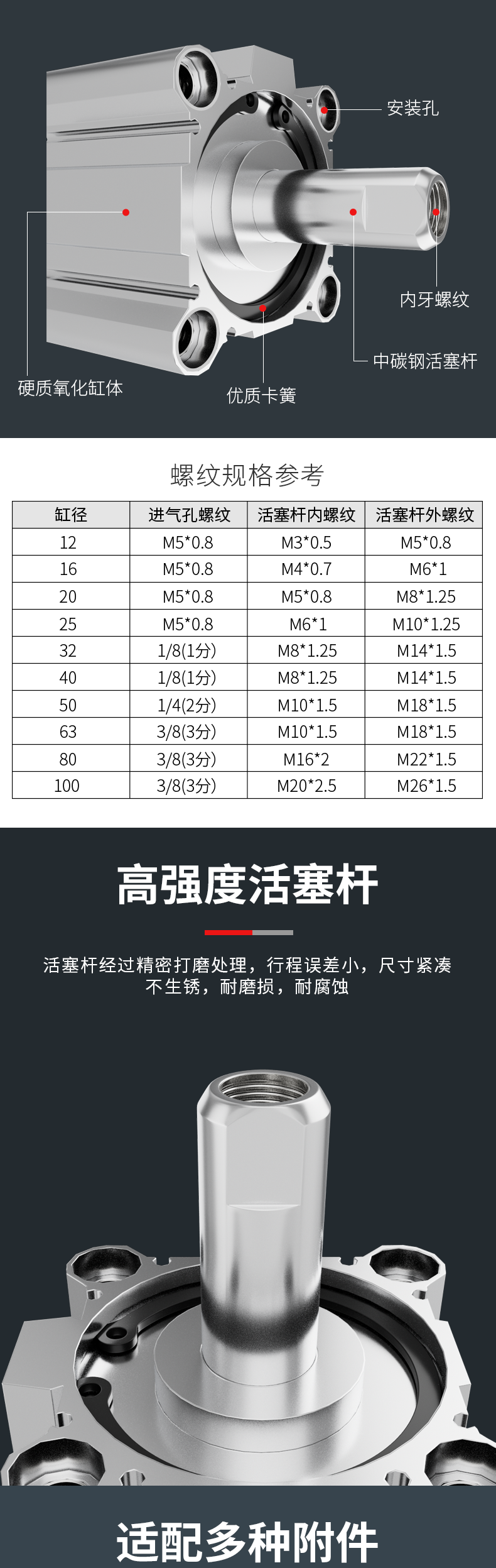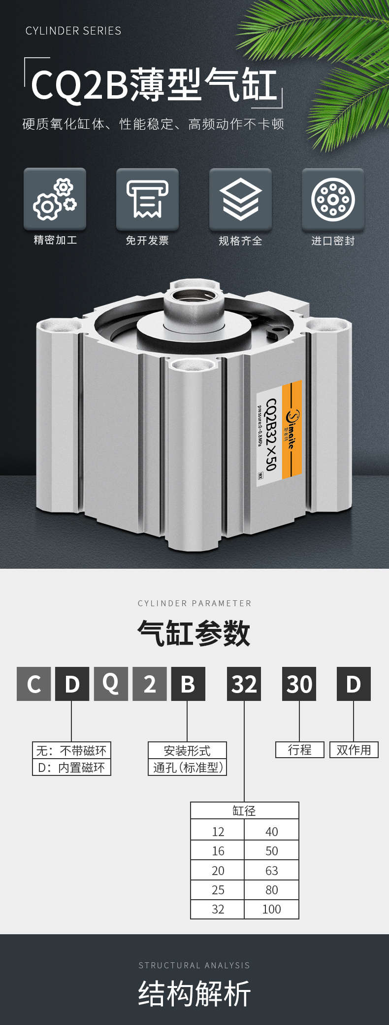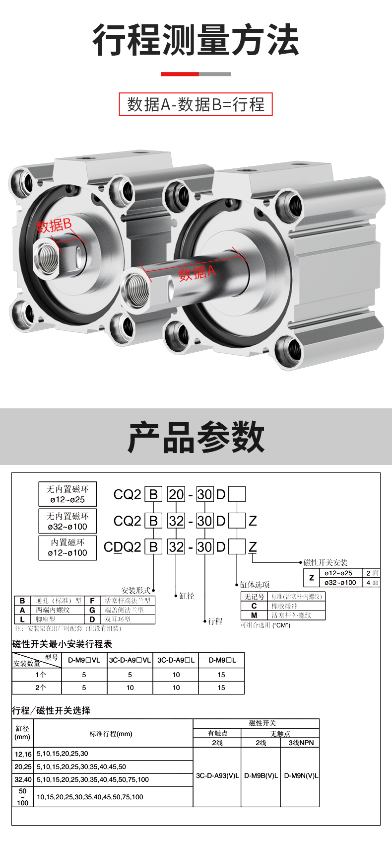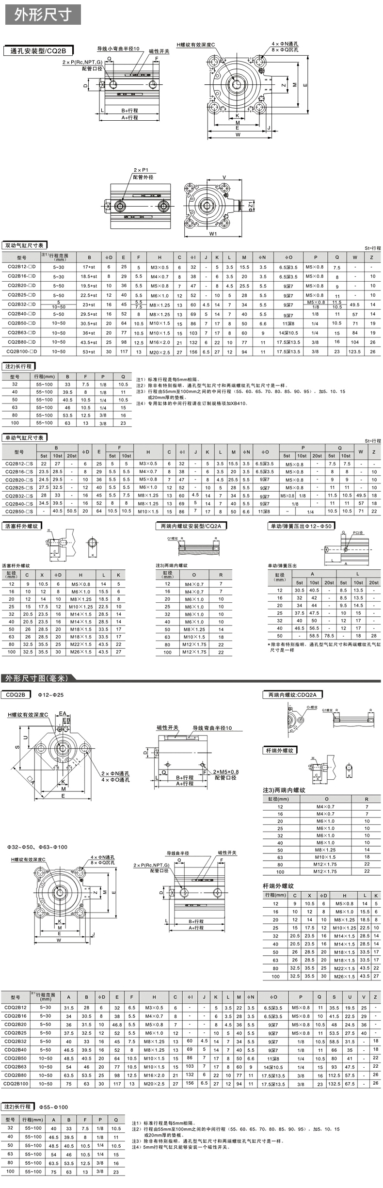 标准行程 | 25 50 75 80 100 125 150 150 160 175 200 250 300 350 400 450 500 600 700 800 900 1000mm | ||