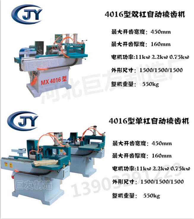 概述:1540型对接机主要用于建筑工地木方对接,把有梳齿机梳完齿的木方放到此机器平台上,经过压紧,挤压把木方的齿部对接完毕拿出就行。其操作简单,维修简便,是建筑工地加工木方的传统机型,