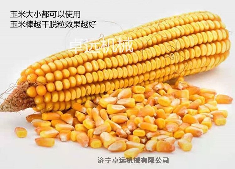玉米脱粒机,主要工作零件为安装在机器上的转子,通过转子高速旋转与滚筒撞击而脱粒。