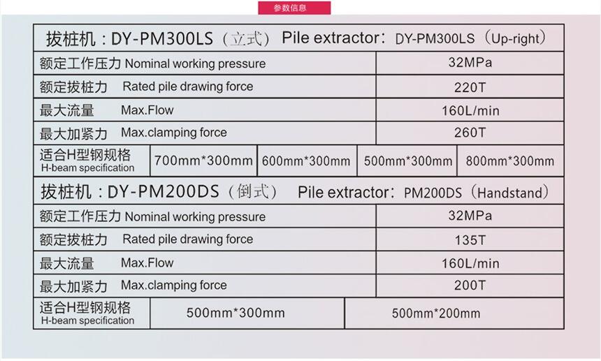 产品特点:1.同类产品目前采用分体式的拔桩机,而我公司采用自主独立设计的一体式结构的拔桩机,整体起吊操作更简单。2.适用于H钢500mm-700mm等常用规格起拔作业,如需起拔900mm的H型钢,需重新定做机器。200-I型拔桩机,设计新颖,底盘可拆卸,不管多密集的型钢桩,同样轻易拔起。300-II型拔桩机,设计更为人性,高效,配有双节油缸,具有调节快慢的功能。遥控操作更加简单。5.刚直拔时,将油缸的频率调为慢速,此时油缸的压力太300T,压紧的桩会慢慢的被拔起。6.拔起后,将油缸的频率调为快速,拔起的村会更快速的被拔起。