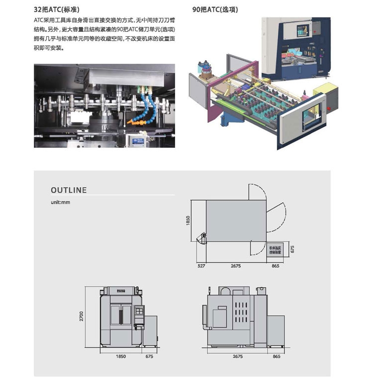 的部件,可以在一个完成夹紧连续铣,钻,扩,铰孔,镗孔,攻丝线和三维曲面,精密加工坡口加工执