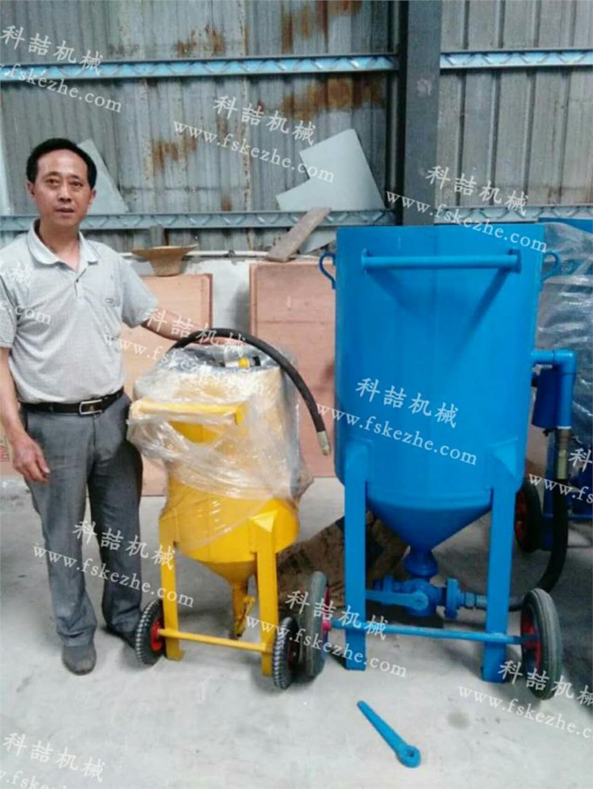 介绍:喷砂机是一种能使用磨料(金属磨料和非金属磨料)借助压缩空气动力,喷射到工件表面的一种机械设备。将磨料喷射到工件表面进行冲击研磨,把表面的杂质、杂色及氧化层清除掉,同时使介质表面粗化,使基材表面残余应力和提高基材表面硬度的作用。
