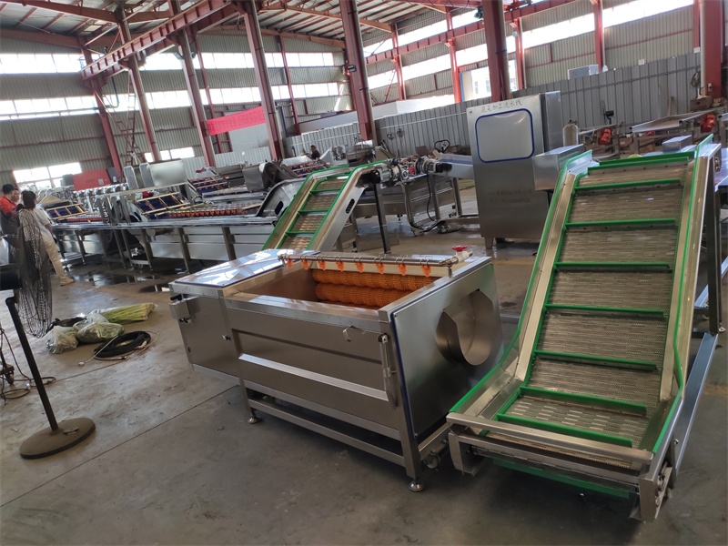 2、设备输送带电机可实现调节变速功能,被清洗的蔬菜经过网链输送,自动送料,自动出料,根据生产需要调节输送带输送速度;