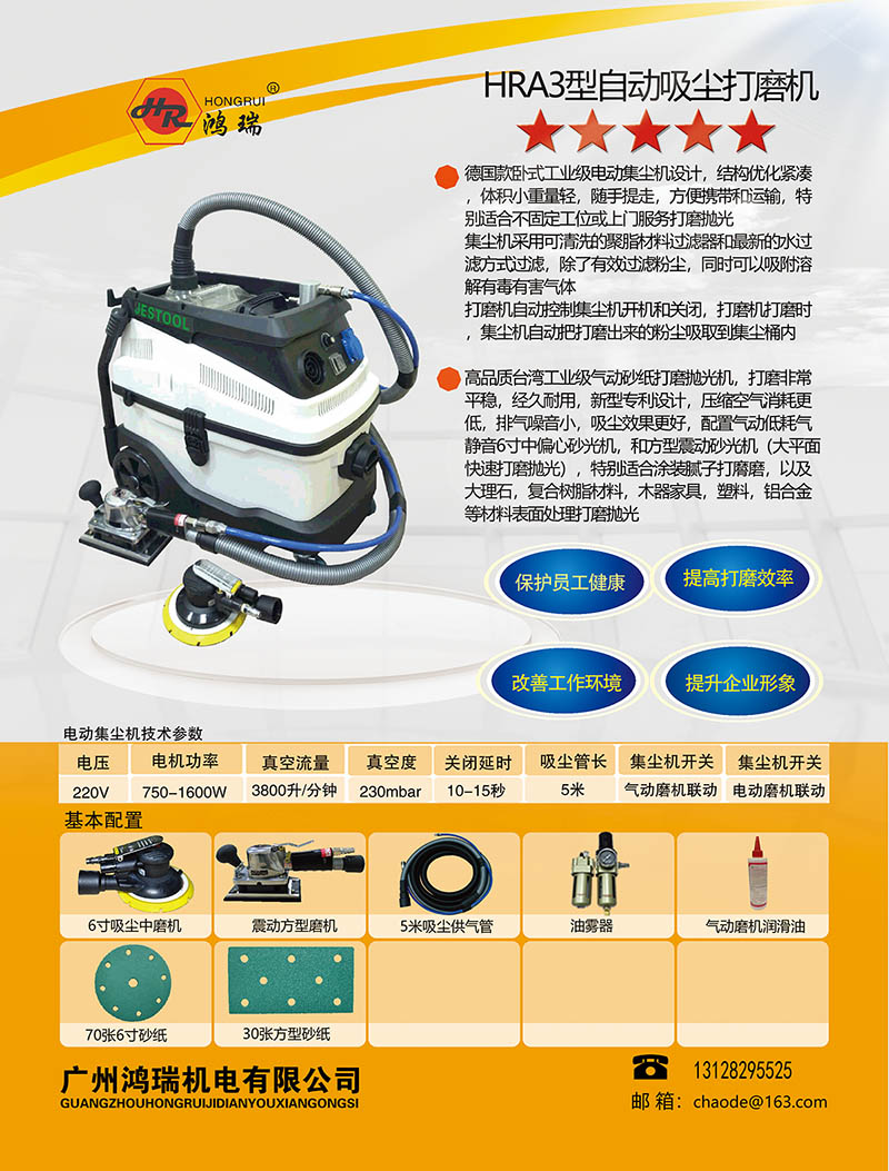 自动关闭功能: 电动和气动磨机停止后,电动集尘主机自动感应延迟10-15秒关闭