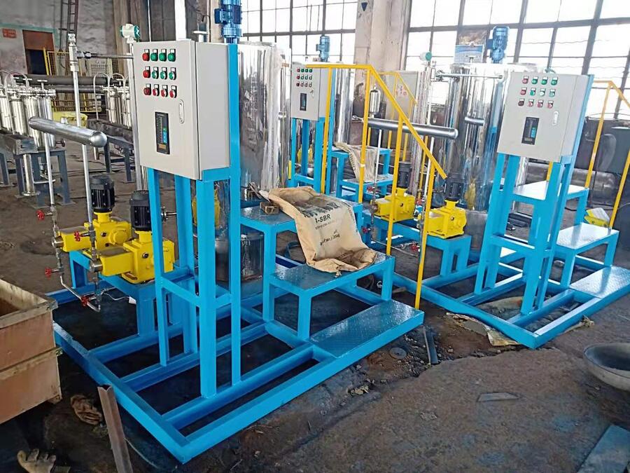 固体药剂加入溶药箱内,然后按比例加入工业水搅拌溶解,由计量投加系统投加到投药点;液体药剂一般不加水稀释,直接投加。投加控制可采用手动方式,也可依据上位系统输出的控制信号,进行随动控制,自动投加。