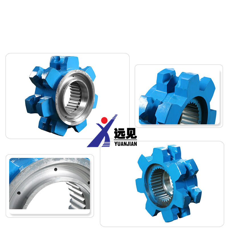 [ 部分式结构的优点 ]当轮子齿磨损后可以只更换链轮而不是更换滚筒,于整体式链轮不同的是,两端的链轮于滚筒是焊接在一起的。