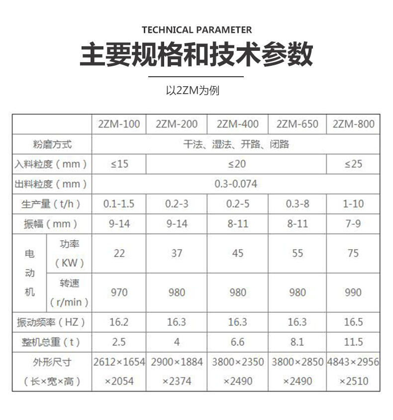 金属 矿石双管式振动磨机 勇梅机械立式震动球磨机主要由振动电机、机体、底架、磨筒、、衬筒、磨破介质和弹性支撑等几部分组成。该机具有振动强度大,磨粉效率高、功率消耗少、噪音小、结构紧凑,安装维修方便等优点。该机可以广泛应用于选矿、建筑材料、研磨材料、粉未冶金、电力、陶瓷、耐火材料、磁性材料、化工、食品等多种行业,是球磨机理想的换代产品。ZM系列振动磨机是一种新型 节能型粉磨设备。它在磨制细粉和超细粉物料时,比传统的回转式磨机具有明显的 性。(效率提高2-5倍,能耗降低20%-30%)