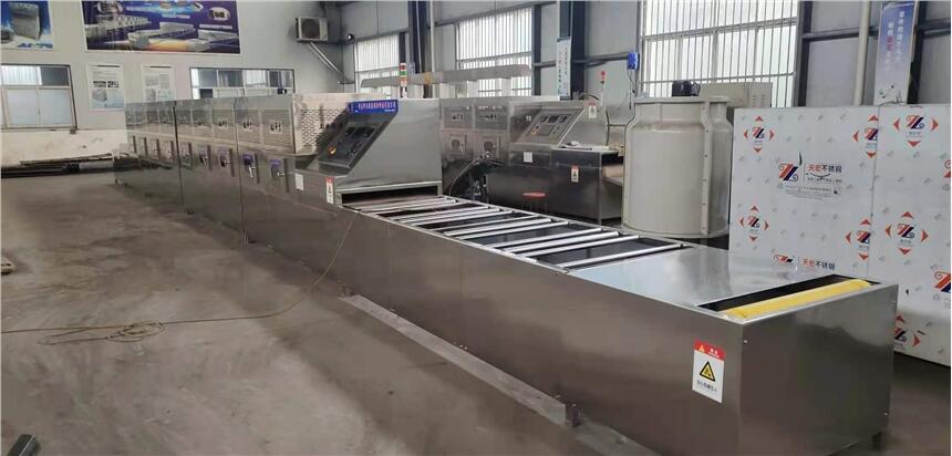 红豆杉微波杀青烘干一体机 适用于食品、医药、化工等领域的各种物料的干燥。如:调味品、添加剂、牛肉干、鱼干、肉脯、虾仁、虾干、海产品、果品、果仁、果片类、豆类、蔬菜类、香菇、蘑菇、黑木耳、菌菇类、方便面、豆制品、卤制品、蚕茧、饲料、金银花、西药原料、中药药丸(蜜丸、水丸、水蜜丸、浓缩丸),中、西药片剂、冲粒、营养品、化工低含水量物料、纸板(蜂窝纸)、瓦楞纸板、木材、地板、纺织、耐火材料等物料。 微波干燥是一种gao效、节能、稳定、可靠、设备简单、cao作方便和新技术。微波干燥机的特点是设备连续生产,只需要用电,不需要其它能源,能快速的将物料中的细菌杀死,设备占地小,无污染,cao作简单;不需要预热也没有在停机后还有能源损耗。人工少,产品质量高。设备先进化程度高,是别的设备无法替代的高新技术产品。 1、时间短、速度快 常规热力干燥是通过热传导,对流或辐射等方式将热量从食品表面传至内部,要达到烘干温度,往往需要较长时间。微波干燥是微波能与食品及其细菌等微生物直接相互作用,热效应与非热效应共同作用,达到快速升温烘干目的,处理时间大大缩短,各种物料的烘干作用一般在3-5分钟。 2、低温烘干保持营养成分和传统风味 微波烘干是通过特殊热和非热的效应烘干,与常规热力烘干比较,能在比较低的温度和较短的时间获得所需的烘干效果。一般烘干温度在75-80摄氏度,就能达到效果,此外微波处理食品能保留更多的营养成分和色、香、味、形等风味,具有膨化效果。 3、节约能源 常规热力烘干往往在环境及设备上存在热损失,而微波是直接对食品进行作用,因而没有额外的热能耗损。相比而言,一般可节电30%-50%。