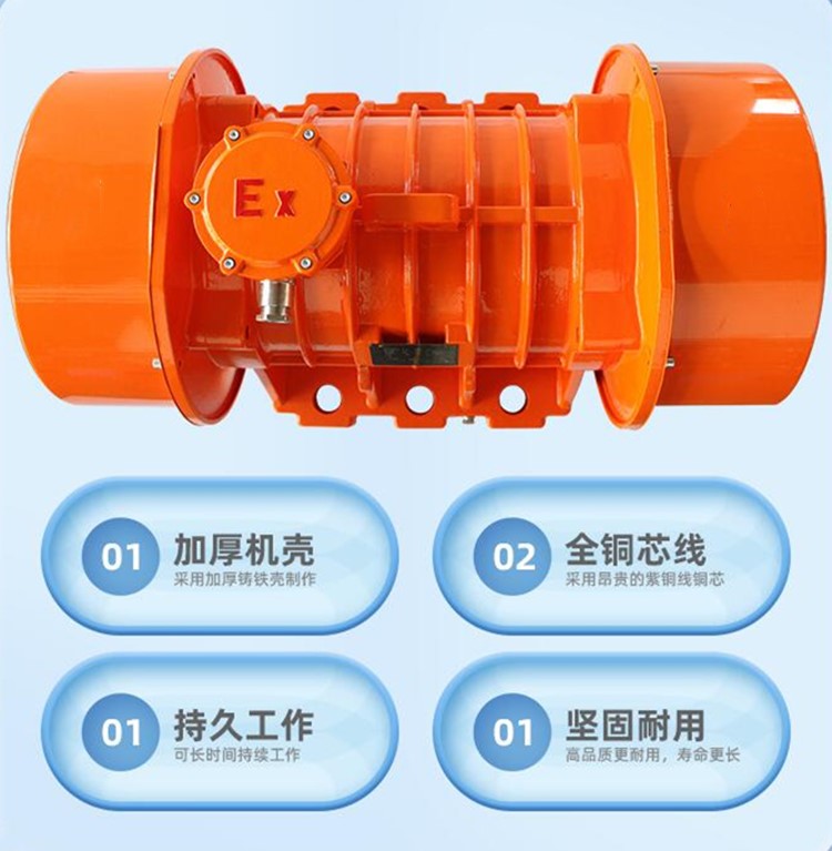 直线筛激振源三相异步振动电机 ZFB仓壁振动器 全封闭式防护罩,此类防尘护罩具有不怕脚踩、硬物冲撞不变形、寿命长、密封好和运行轻便等特点。激振器风罩的作用风罩中间有空。起进风保护作用。风罩的大小取决于电机的大小。每种系列的电机风罩都有所不同,形状也不同。内径以及高度有不同。一般电机风罩越大风罩的铁板越厚。鉴别风罩的好坏,主要看铁板的厚度。越厚越好。
