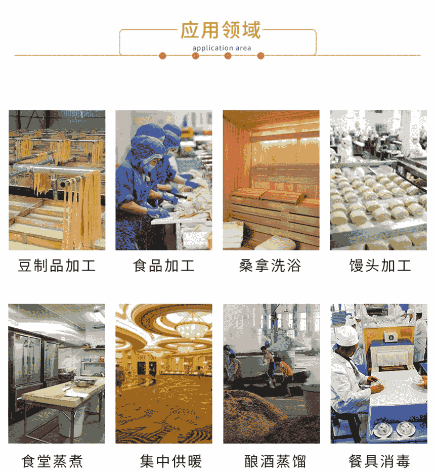 用于领域:食品蒸煮、热水供暖、热水洗浴、小型工业加温等...