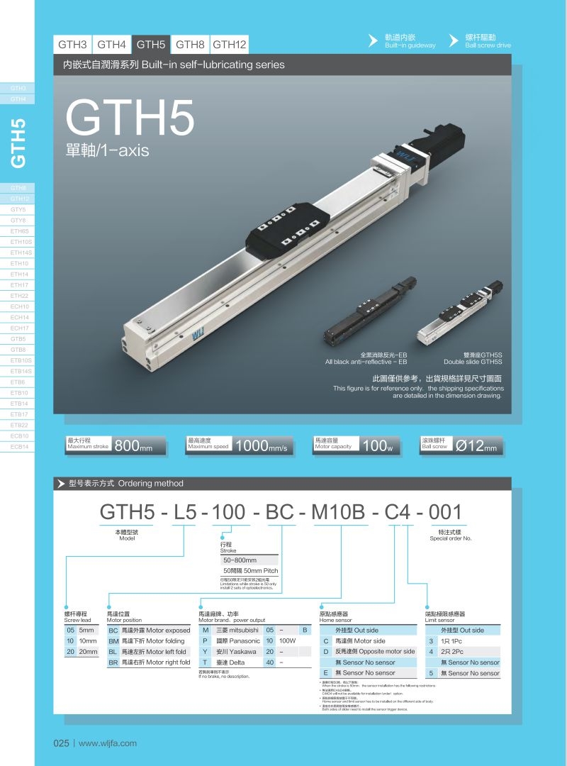 万里疆内嵌式滑台模组GTH系列采用同步带传动,速度快,配置伺服电机可达3000mm/s,重复精度:±0.04,特别适用于高速运动需求。