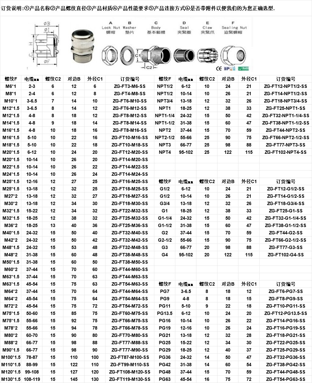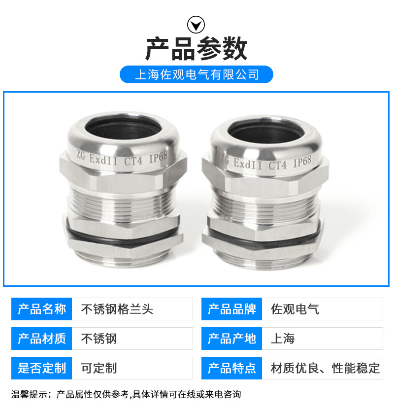 304不锈钢电缆防爆填料函规格尺寸型号M25*1.5美制NPT3/4英制G3/4 是否进口 | 否 | ||