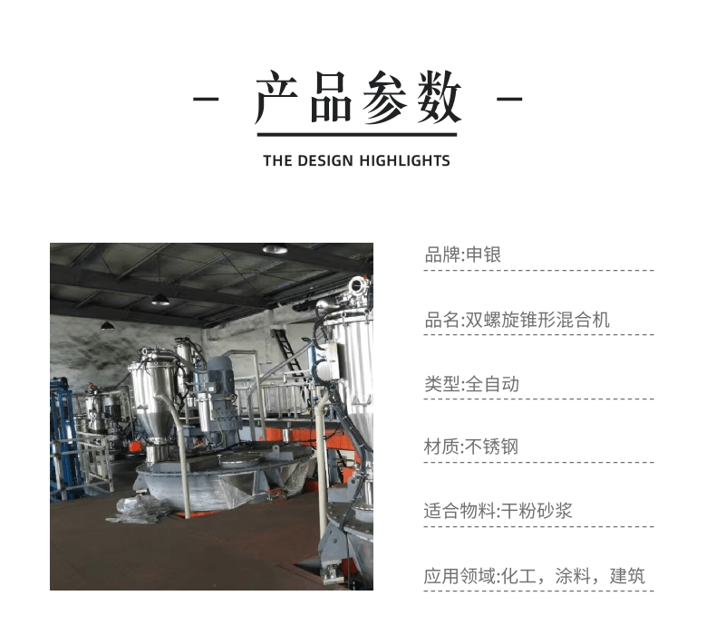 申银双螺旋锥形混合机双轴无重力混合规格齐全可定制