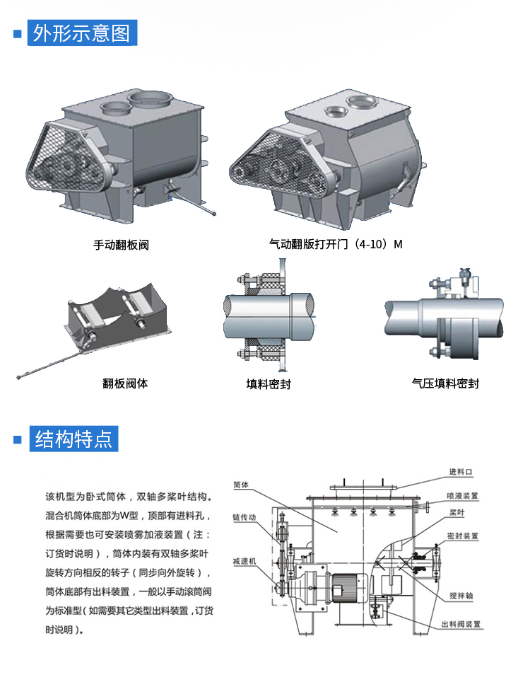 饲料预混料混合机双轴桨叶式混合搅拌混合均匀度高混合速度快