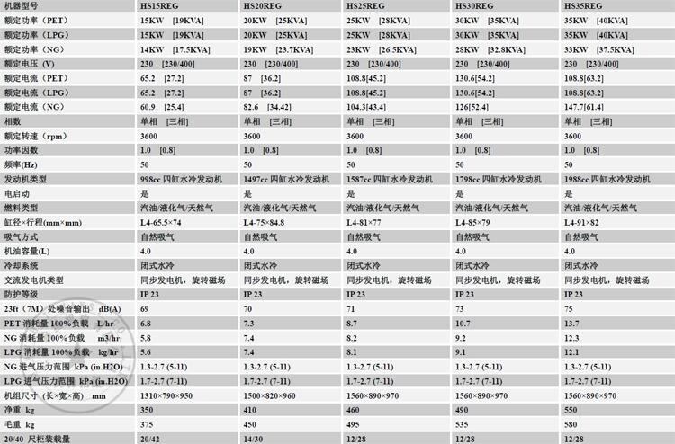 三单相35KWHS35REG汽油燃气双燃料发电机组