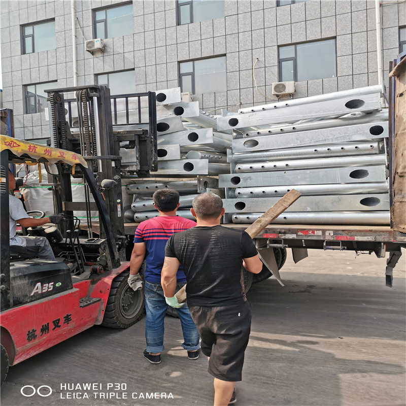 (2)中间端部立柱。缆索护栏的安装长度超过200-300m时,应采用中间端部结构。路侧缆索护栏的中间端部结构为三角形。端部立柱由三角形支架、底板和混凝土基础组成,端部立柱的构造和尺寸。