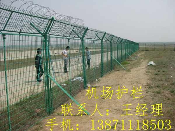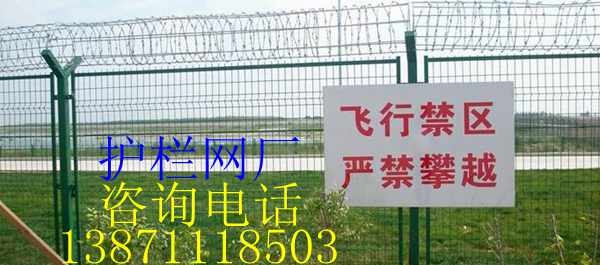 机场护栏网产品介绍:采用优质低碳钢丝焊接片网与钩挂立柱组成防护网。