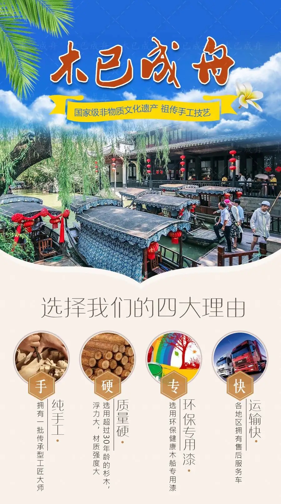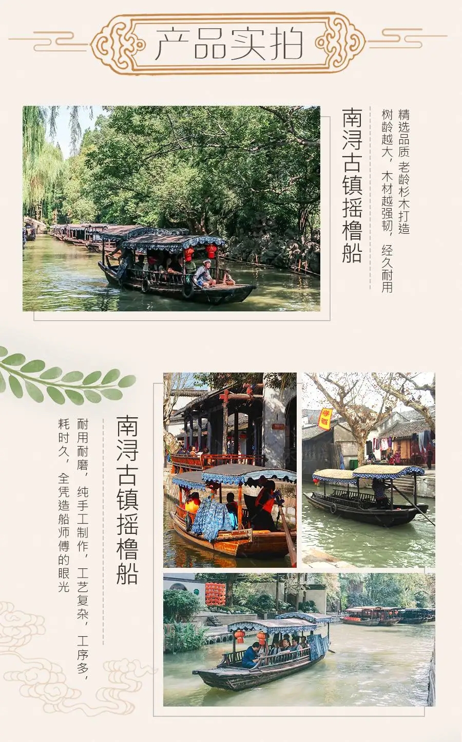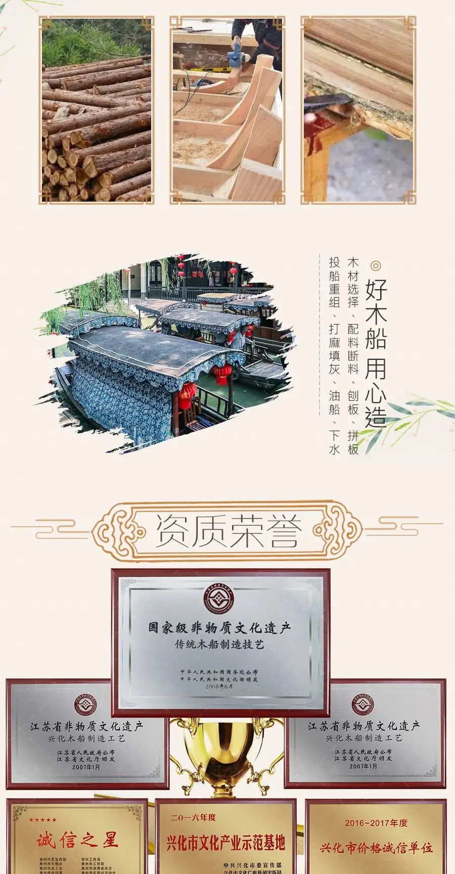 特色古镇摇橹船8-10人坐旅游观光船仿古木船木质游览艇水乡乌篷船