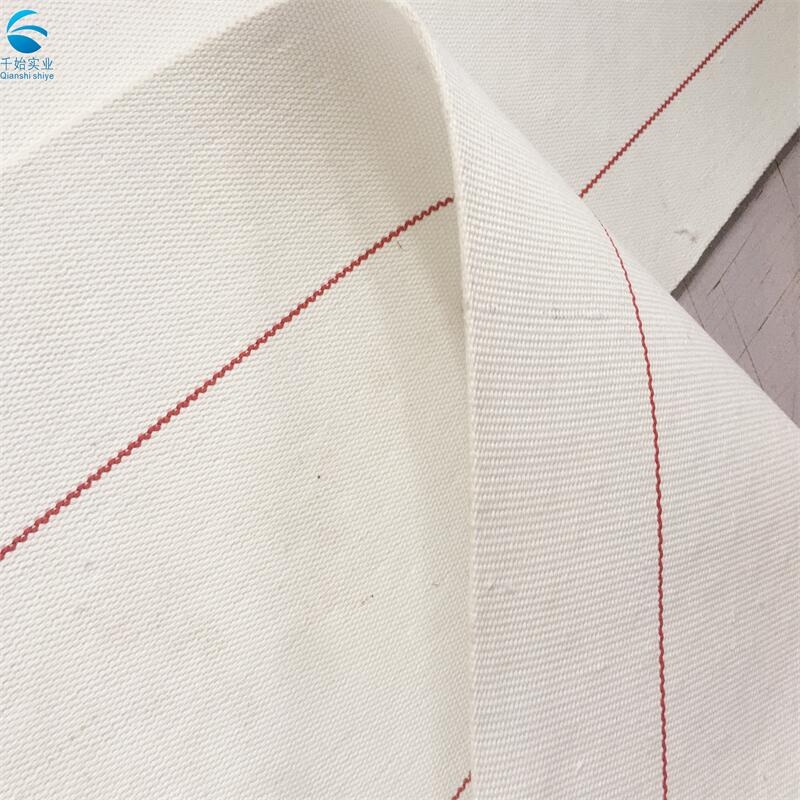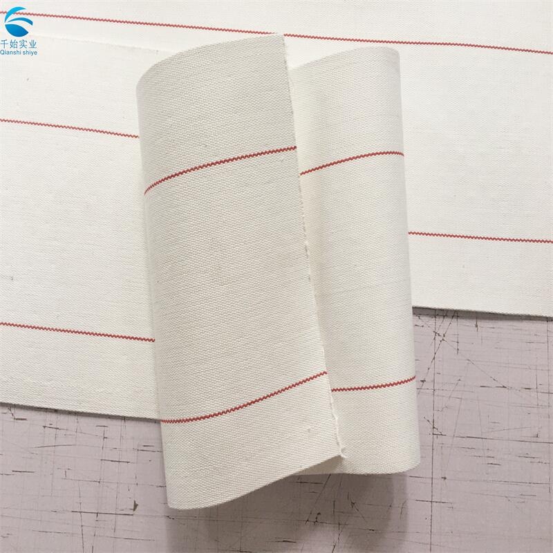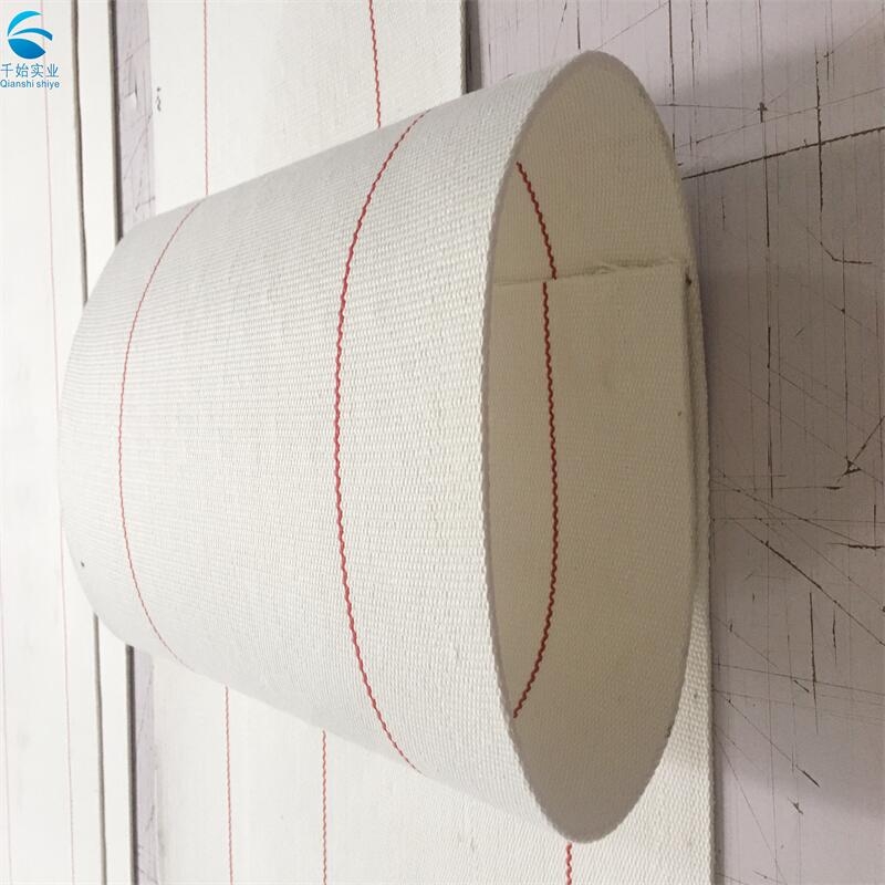 千始公司全棉帆布,采用高质量全棉制作编制而成,呈乳白色,品质优良,不含其他纤维,抗静电,无毒。,使用方便;涤棉帆布,采用30%棉,70%涤纶结合编制而成,亮白色,洁净光滑,抗湿,利水,耐一定腐蚀;木棉输送带,采用台湾进口木棉制作,具有良好的耐热,耐高温的性能。在pvc生产行业用的耐高温木棉输送带,专业用于融溶状态的pvc输送5mm厚,pvc溶化后不容易沾住皮带,能长时间耐高温200度。帆布输送带,在机械设备行业,食品行业,电子行业,物流行业,化工行业,铝材行业,钢材行业等有涉及,食品厂,制药厂、粮库提升,蓄电池生产线等专业输送,面粉厂的高方筛中输送,管状带还可用于服装布料的热定型输送。可以跟具不同客户要求,定制无缝环形帆布输送带,锁边帆布输送带,还可以利用高温刀,来切割不同规格的帆布输送带。