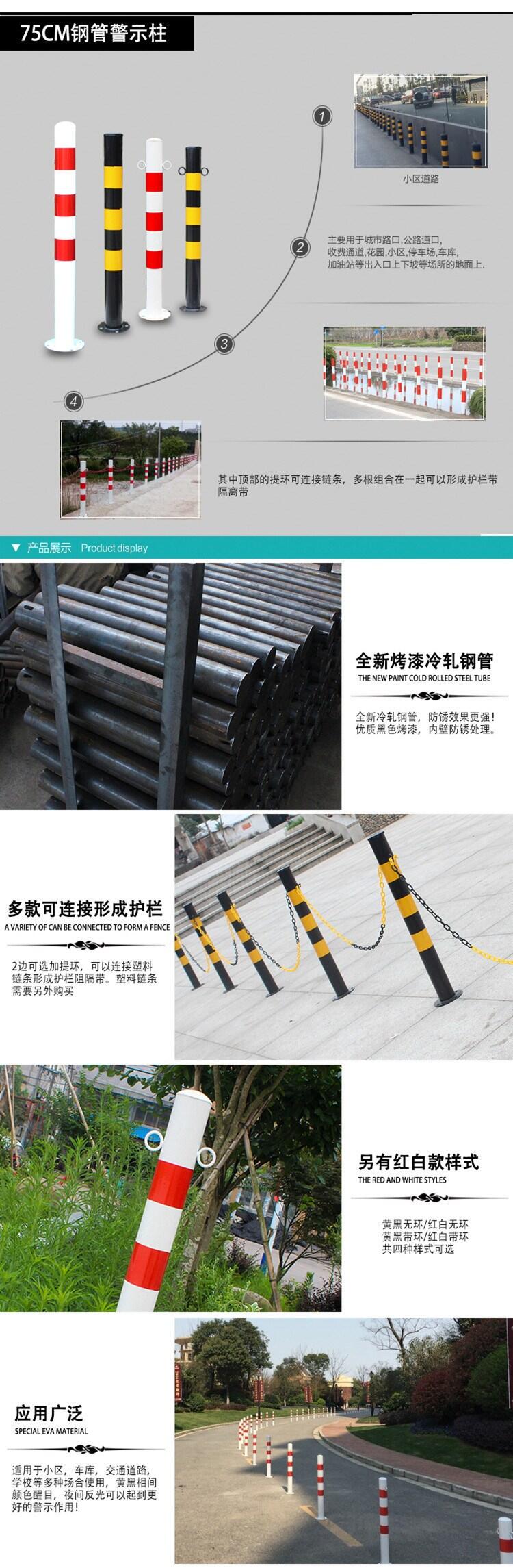 优点:加厚钢管,坚固耐用,保护车辆行人越到危险地带,时常提醒行人注意安全!黄黑相间颜色及其醒目,防晒、耐热、耐寒、不变色!夜间还有反光效果!