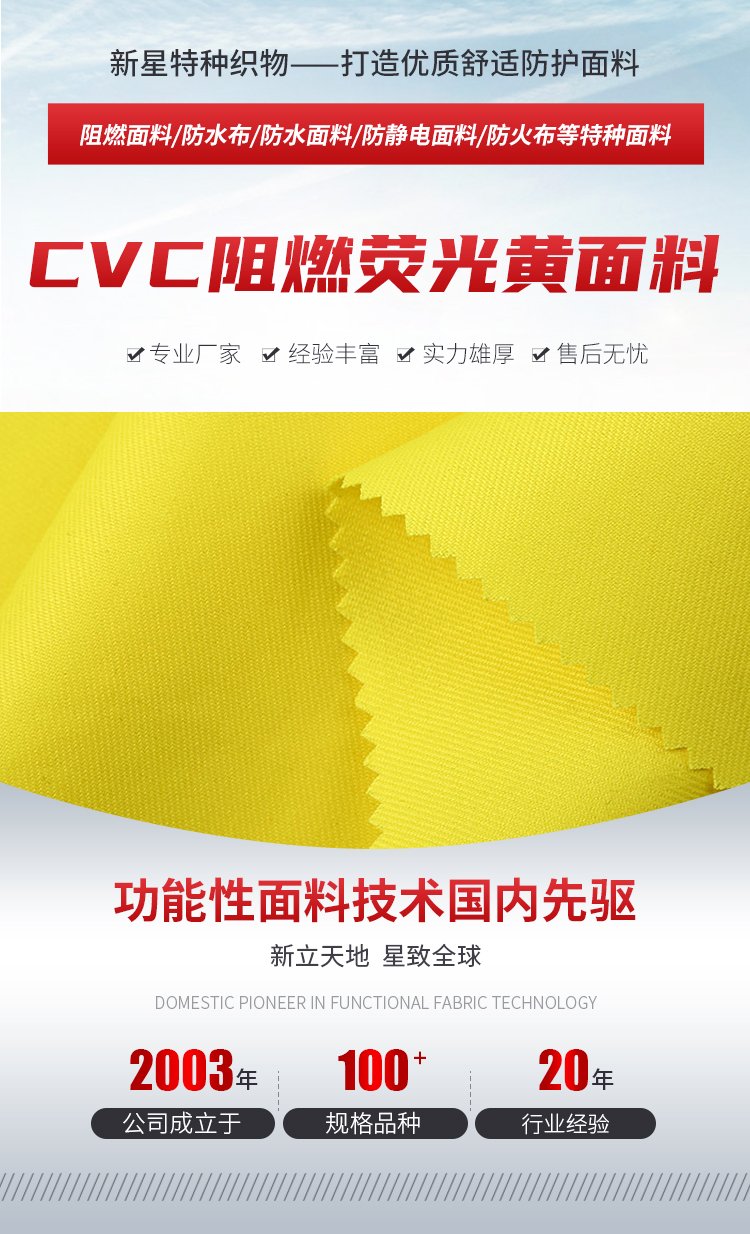 CVC阻燃荧光黄面料 200-350g/㎡ 布料定制 标准防火布 品牌 | 新星 | ||