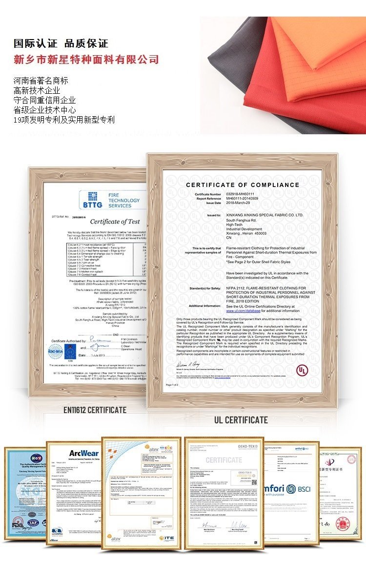 EN11612 EN1149认证CVC80/19/1阻燃防静电防水直贡 品牌 | 新星 | ||