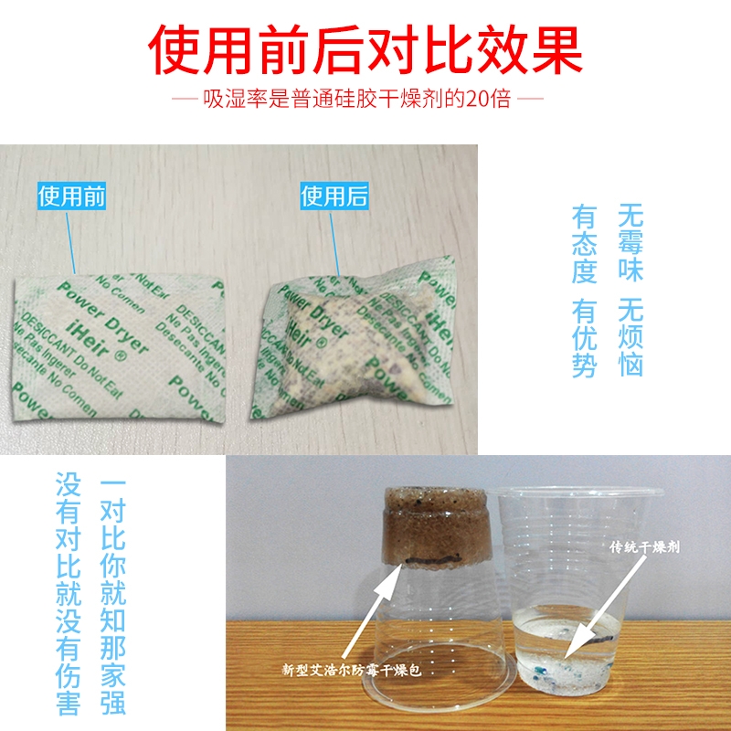 防霉干燥剂H-4采用天然矿物质组成 , 重金属含量低于欧盟及美国法规限值 , 本身不含酸性 , 用后丢弃不会对土壤、水、空气等环境造成污染,特定条件 ( 25℃,相对湿度为80% ) 下超过普通硅胶干燥剂吸水倍率的N倍。