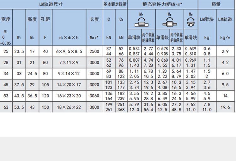 使用范围 | 机床专用导轨滑块 | ||