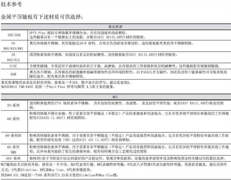 这项性能取决于链条基材和生产加工过程中的处理情况。为了确保有优异的顺滑性能,莱克斯诺采用了一系列授权专列并专门设计用于平顶链板的链条材料。您可以在下一页中找到关于这些材料的详细信息。
