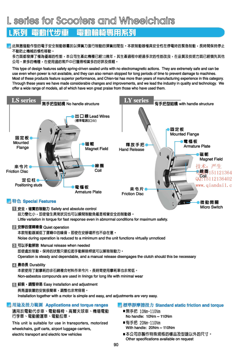 无激磁动作型的电子安全制动器属於以弹簧力进行制动的弹簧封闭型。本款制动器安全性在停电时的紧急制动,长时间保持停止不动防止机械的惯性移动。适用於电动代步车、电动轮椅、高尔夫球车、机场电动行李车、电动搬运车、电动拉车。