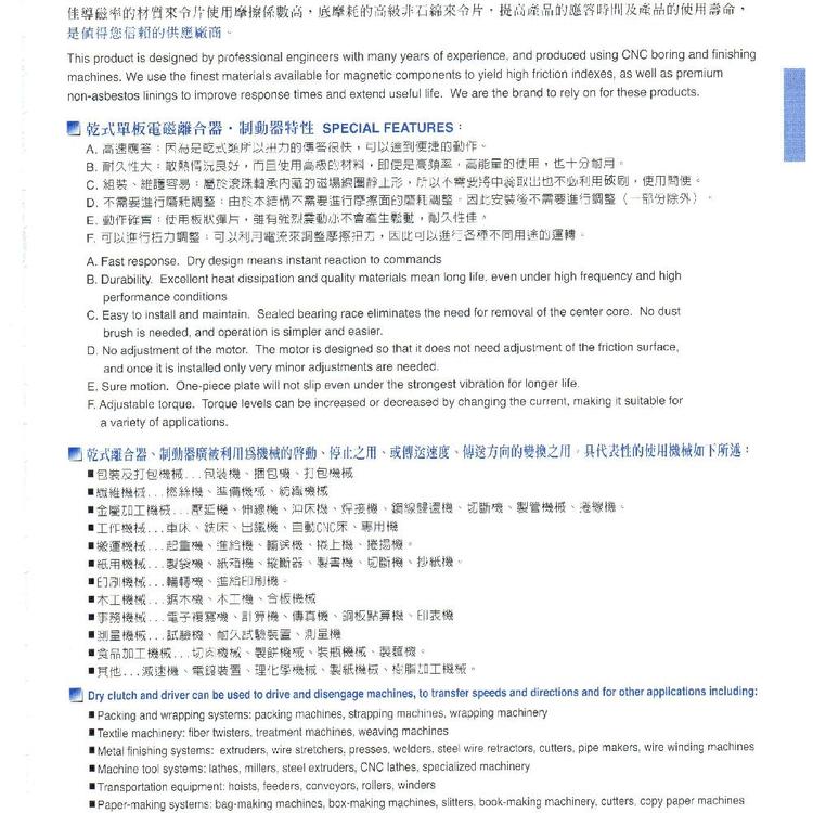 本公司专业生产各式机械用电磁式单板离合器.制动器,电磁式安全制动器,电磁式湿式多板离