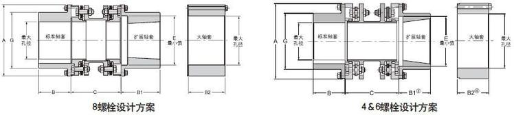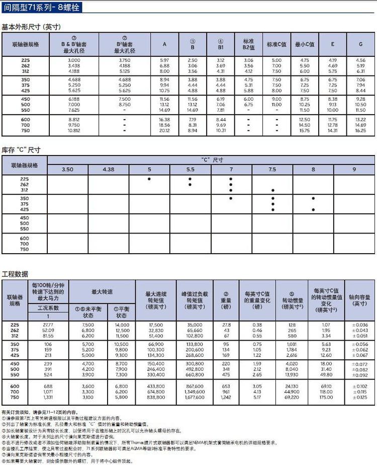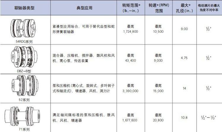 角度补偿:使用4&6只螺栓时,每套膜片组件为1/2°;使用8只螺栓时,每套膜片组件为1/3°。